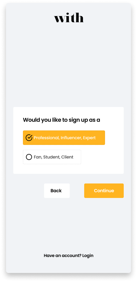 Buyers didn’t have a term to represent them as users either. Sometimes, stakeholders would refer to buyers as “users.” Other times they would call them “Ravers.” These terms were also used as a catch-all to describe both parties. Rave was also undergoing a rebrand (from Rave to With) so the term “Ravers” wouldn’t work much longer anyway.